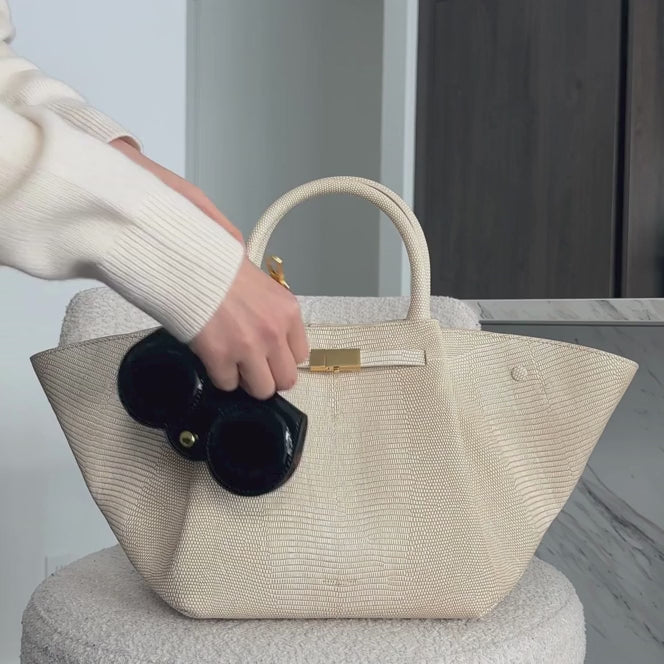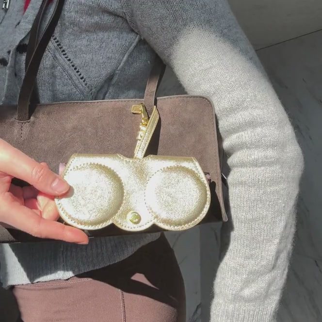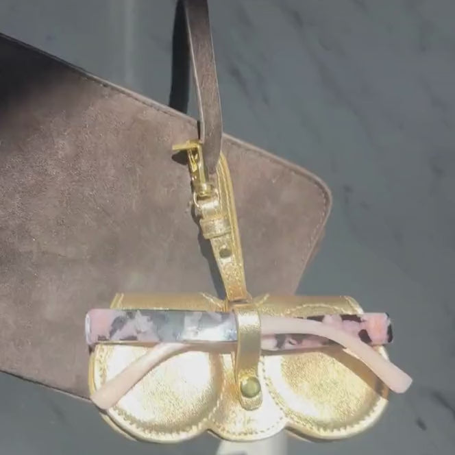 Each piece clips on effortlessly with a removable strap, while a magnetic snap closure keeps your frames secure and easy to access. Crafted in small batches from genuine or vegan leather, it’s designed to hold even oversized frames — without compromising your aesthetic.